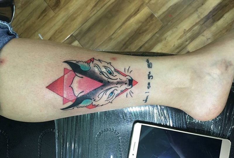 • T包小腿吹火男+阿多福纹身图片_腿部老传统新传统吹火男阿
