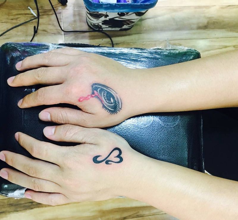 • 手背潮流时尚的玫瑰花眼睛纹身图案