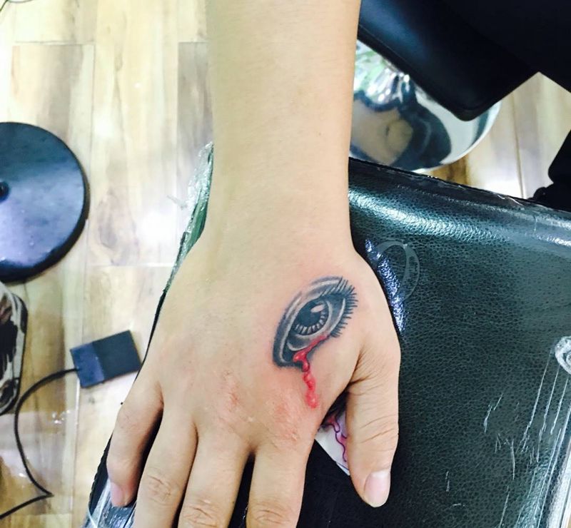 • 手背潮流时尚的玫瑰花眼睛纹身图案