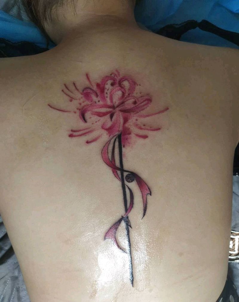 彼岸花纹身图片_背部水彩纹身图案