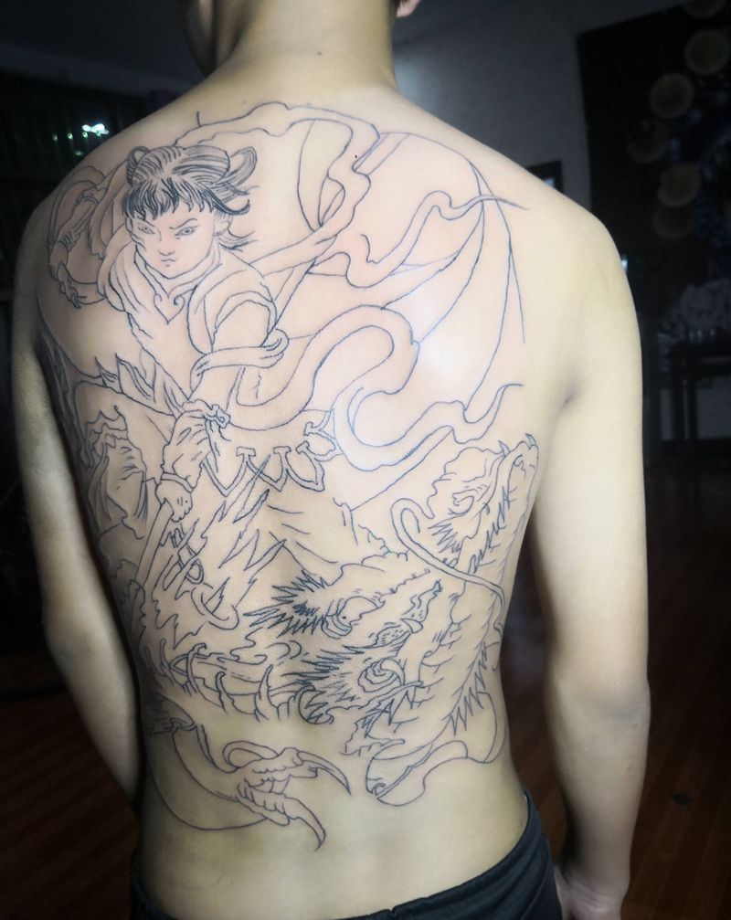 当前位置: 首页 >重庆市纹身店-520纹刺纹身图案>哪咤挑龙筋纹身图片_背部纹身图案
