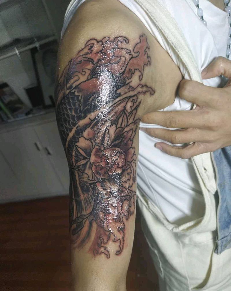 • T网红王老大花腿龙纹身图片_腿部新传统纹身图案