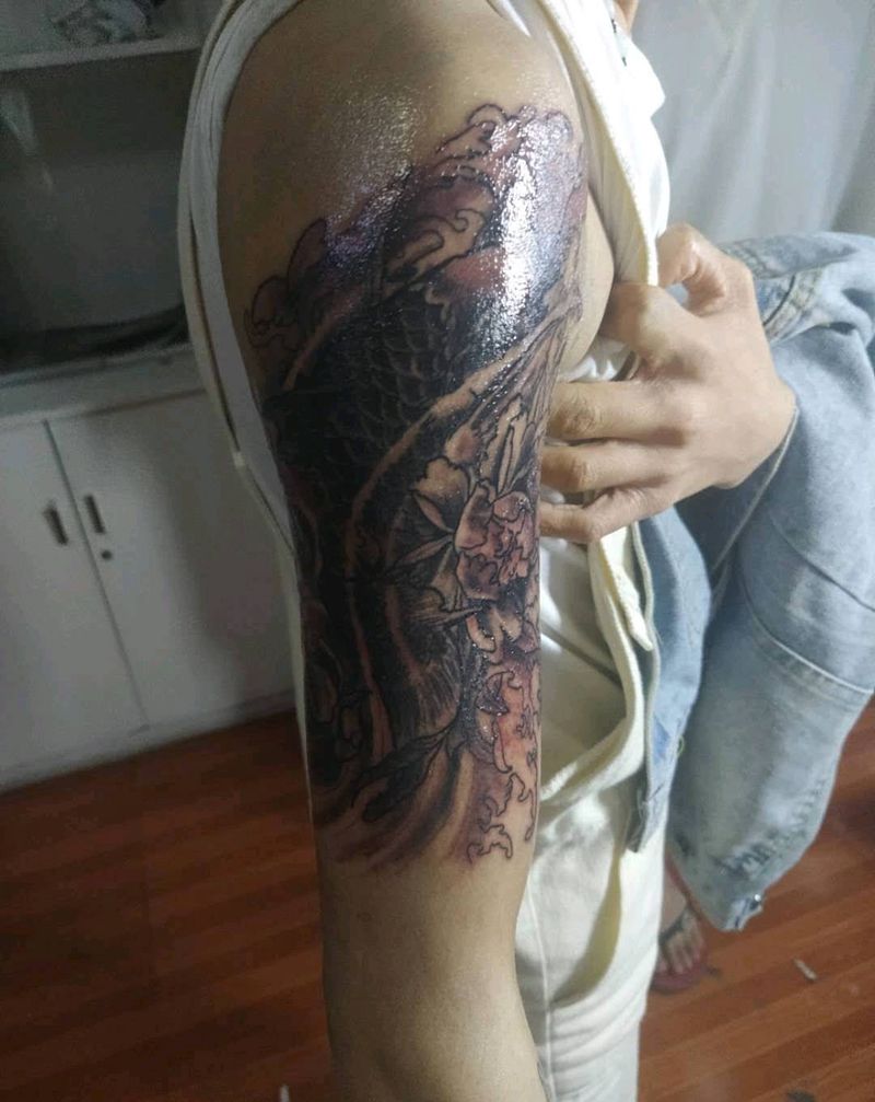 • T网红王老大花腿龙纹身图片_腿部新传统纹身图案