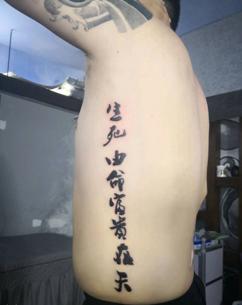 生死由命纹身图片_腰部纹身图案