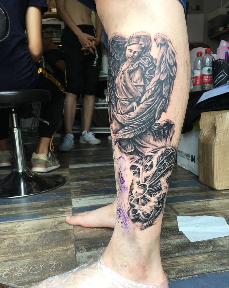 • T网红王老大花腿龙纹身图片_腿部新传统纹身图案