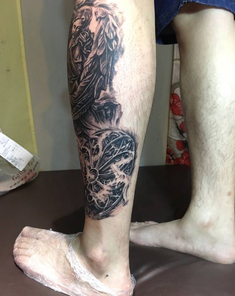 • T网红王老大花腿龙纹身图片_腿部新传统纹身图案