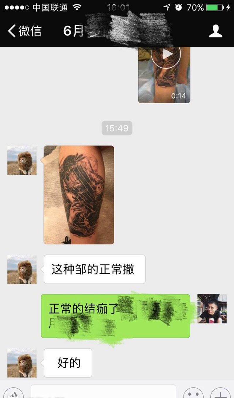 当前位置: 首页 >重庆市纹身店-独活刺青纹身图案>纹完第三天客人反馈纹身图片