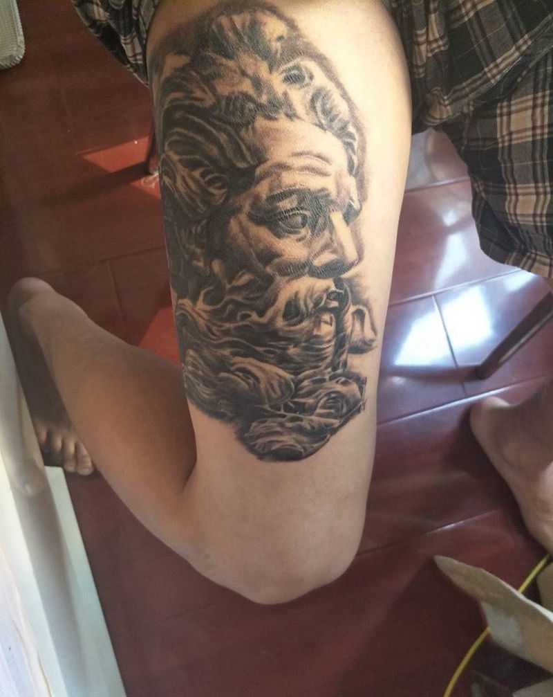 当前位置: 首页 >重庆市纹身店-独活刺青纹身图案>海神波塞冬纹身图片_成品腿部肖像欧美写实宗教纹身图案