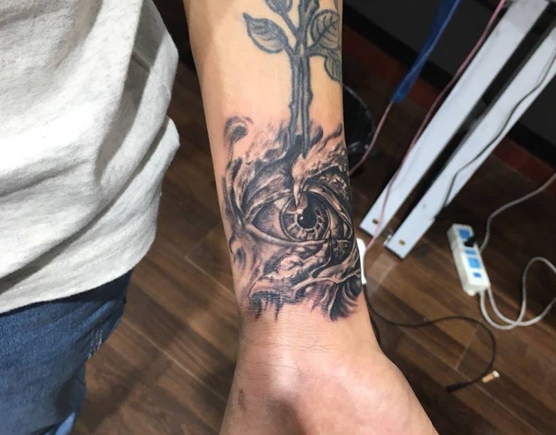 • 手背潮流时尚的玫瑰花眼睛纹身图案