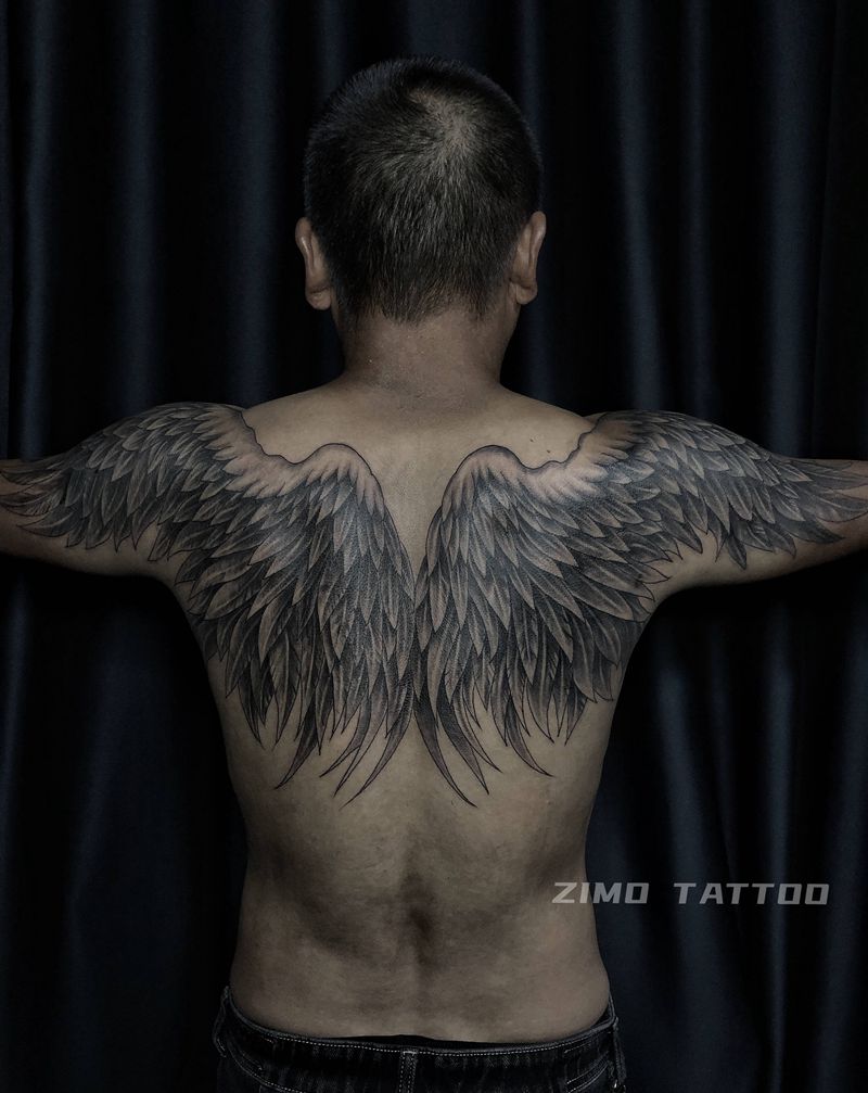 当前位置: 首页 >重庆市纹身店-子墨刺青工作室纹身图案>翅膀纹身图片_手臂背部欧美写实点刺纹身图案
