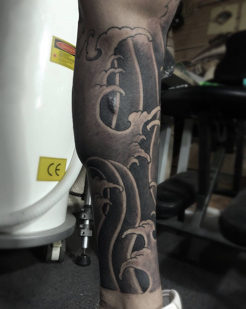 当前位置: 首页 >重庆市纹身店-子墨刺青工作室纹身图案>小腿浪花纹身图片_脚部腿部老传统新传统纹身图案