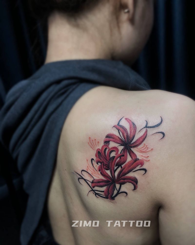 当前位置: 首页 >重庆市纹身店-子墨刺青工作室纹身图案>彼岸花纹身图片_背部肩部新传统欧美写实纹身图案