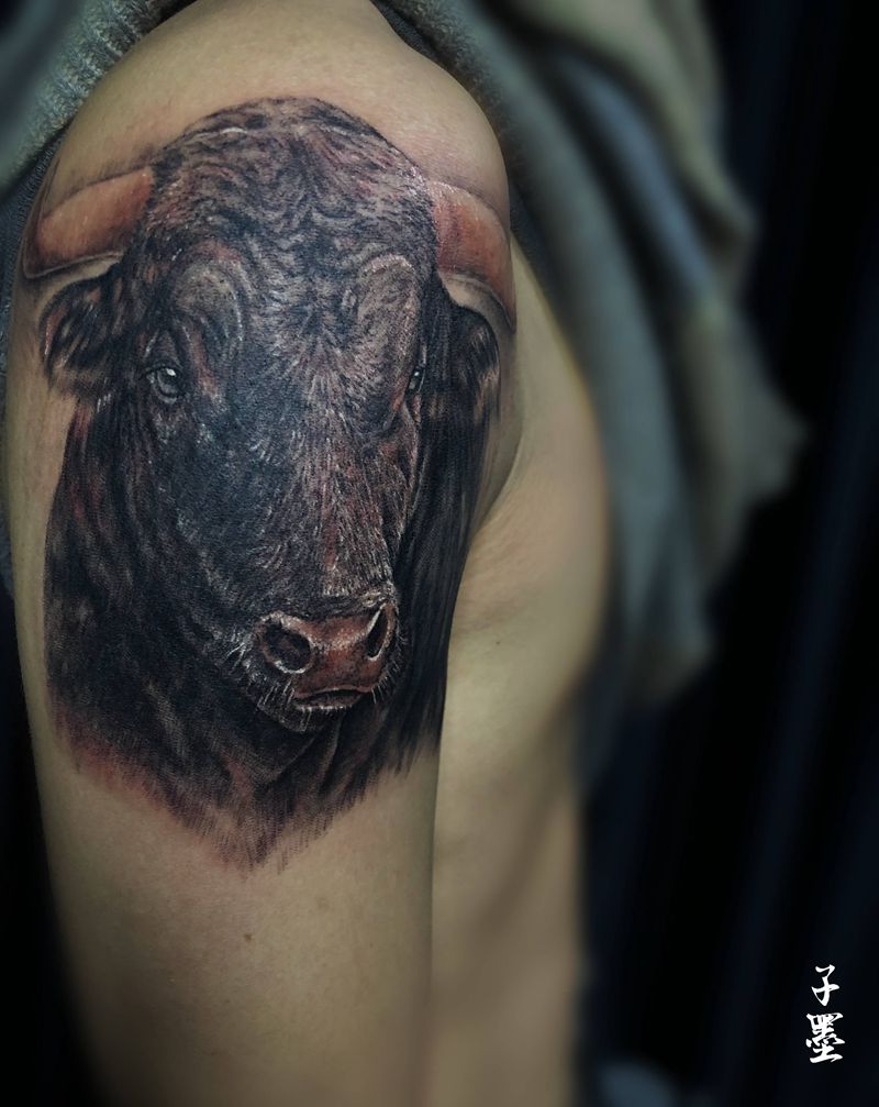 当前位置: 首页 >重庆市纹身店-子墨刺青工作室纹身图案>牛纹身图片_手臂手部欧美写实纹身图案