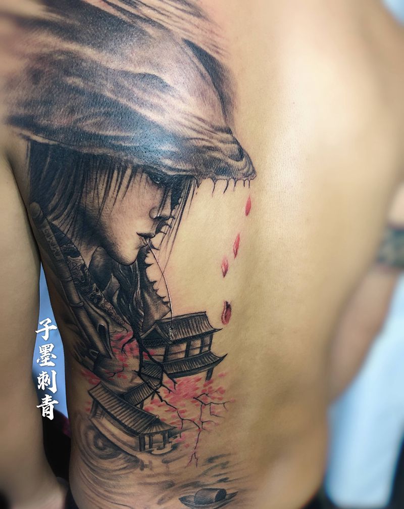 当前位置: 首页 >重庆市纹身店-子墨刺青工作室纹身图案>寒江孤影纹身图片_腰部背部欧美写实新传统纹身图案