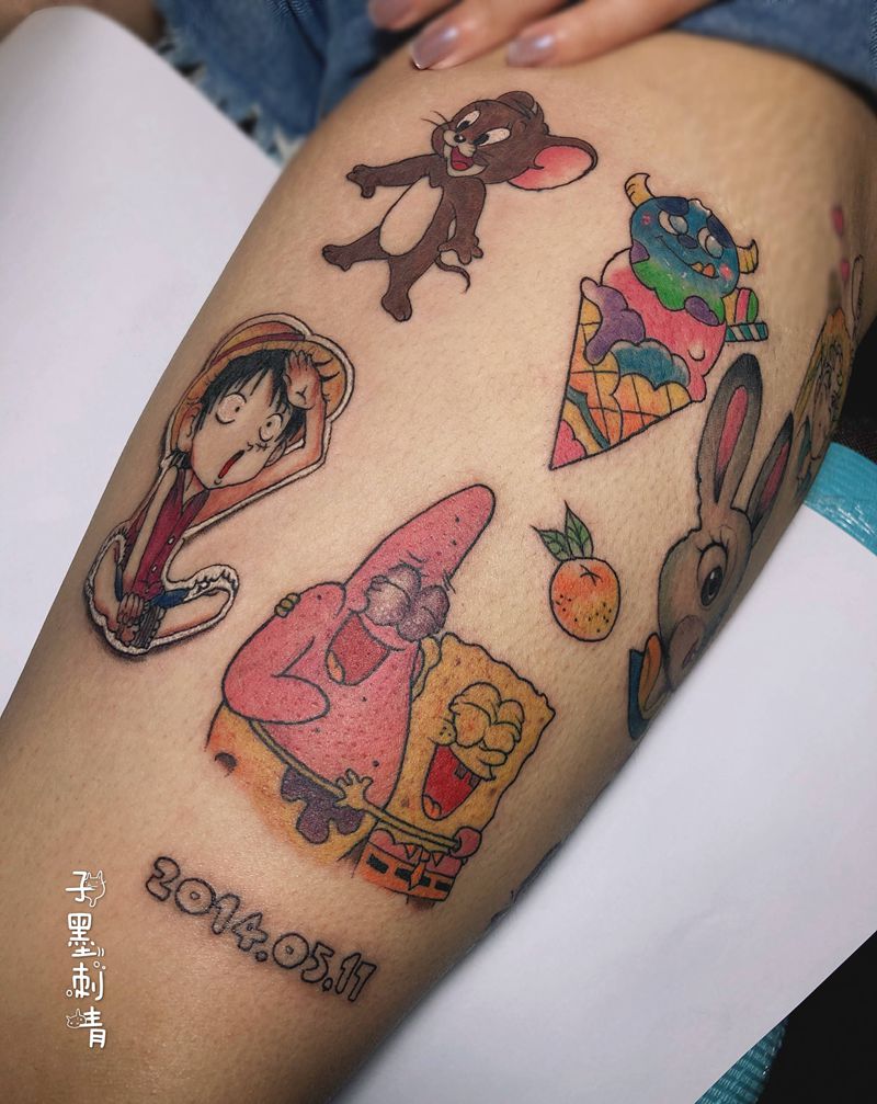 当前位置: 首页 >重庆市纹身店-子墨刺青工作室纹身图案>卡通纹身图片_脚部腿部水彩New School纹身图案
