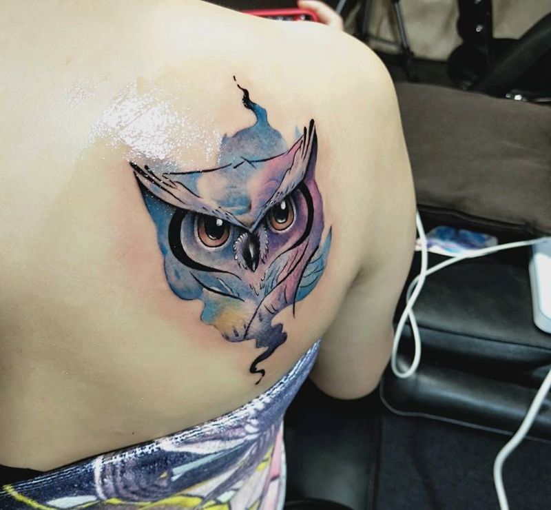 当前位置: 首页 >重庆市纹身店-子墨刺青工作室纹身图案>多彩猫头鹰纹身图片