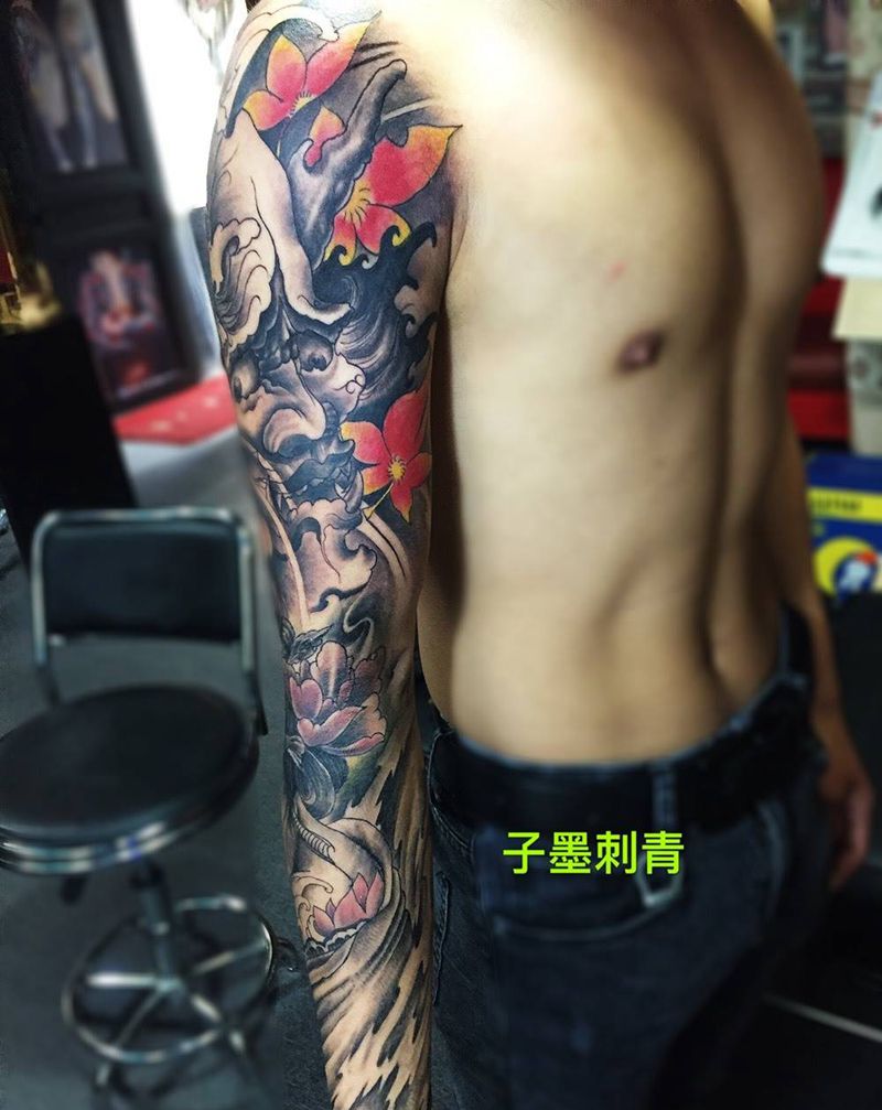 当前位置: 首页 >重庆市纹身店-子墨刺青工作室纹身图案>艺妓般若大花臂纹身图片