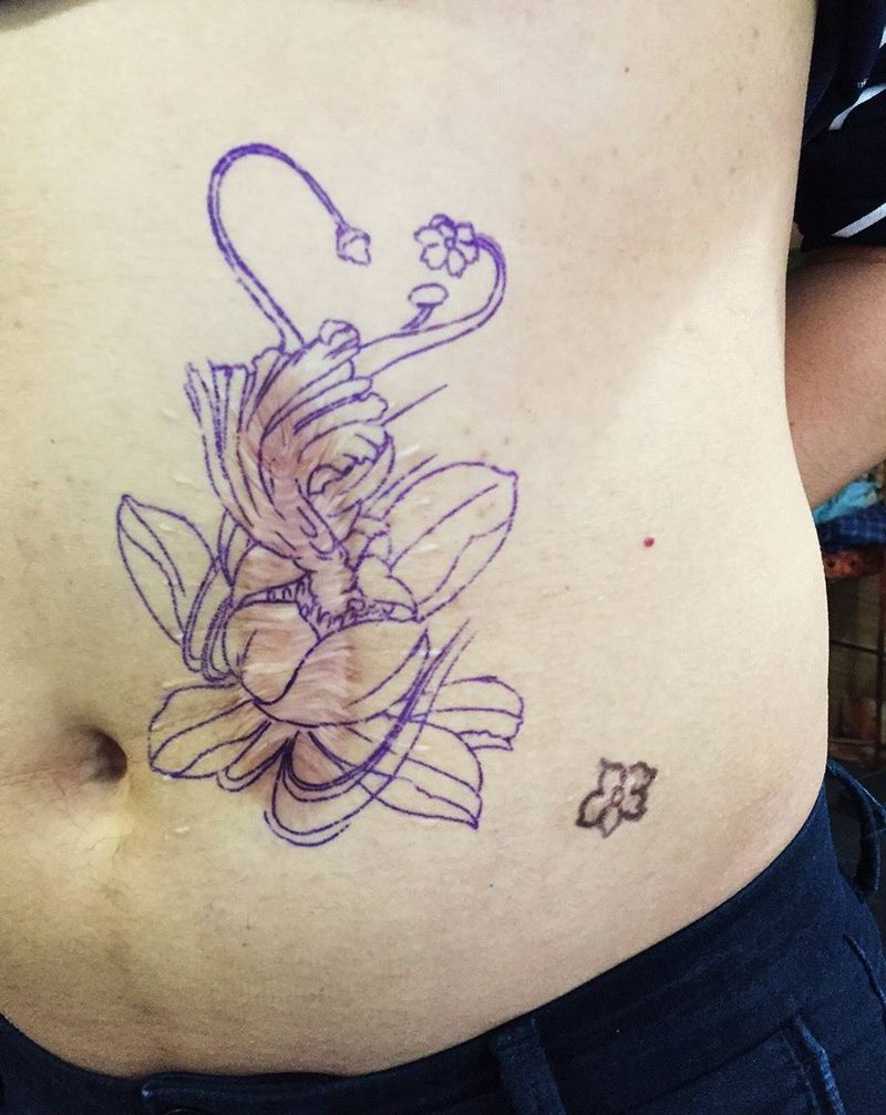 • 时尚性感的腹部莲花纹身图案