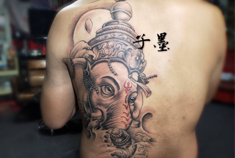 黑灰满背纹身图案