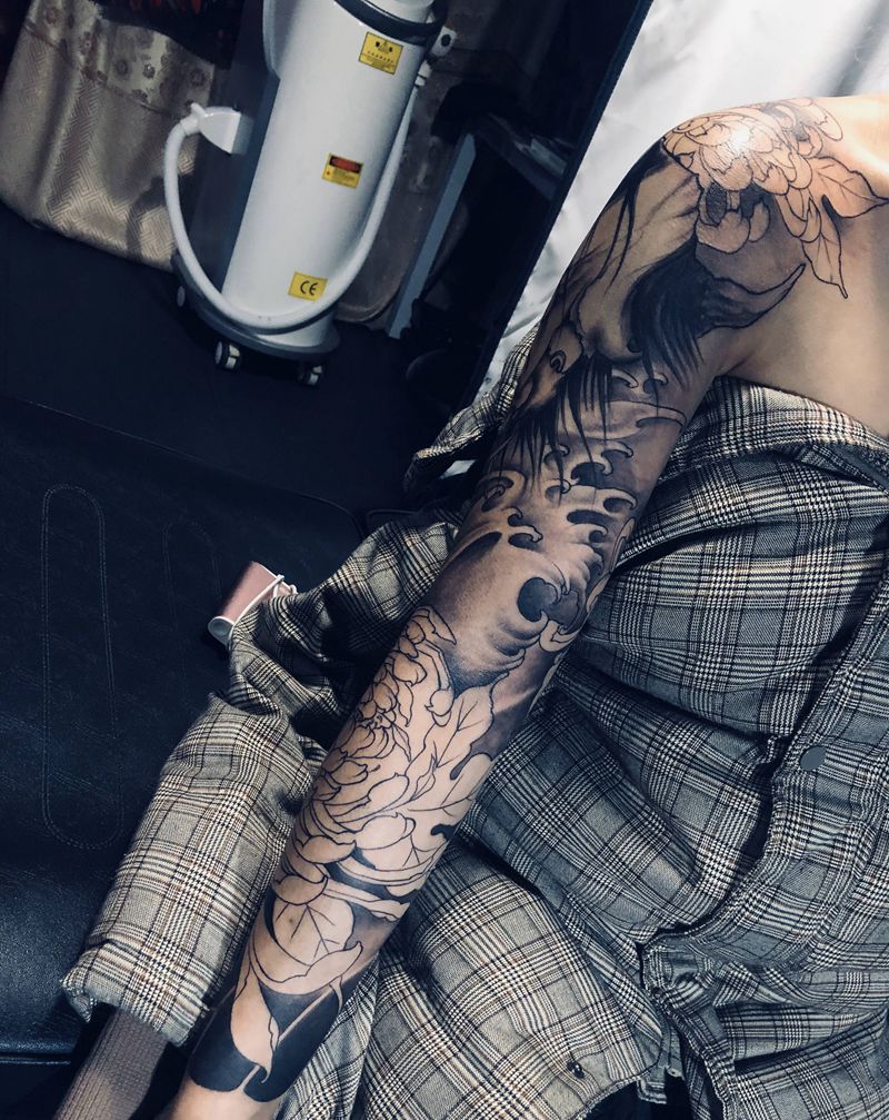 当前位置: 首页 >重庆市纹身店-子墨刺青工作室纹身图案>般若大花臂纹身图片_手臂新传统纹身图案