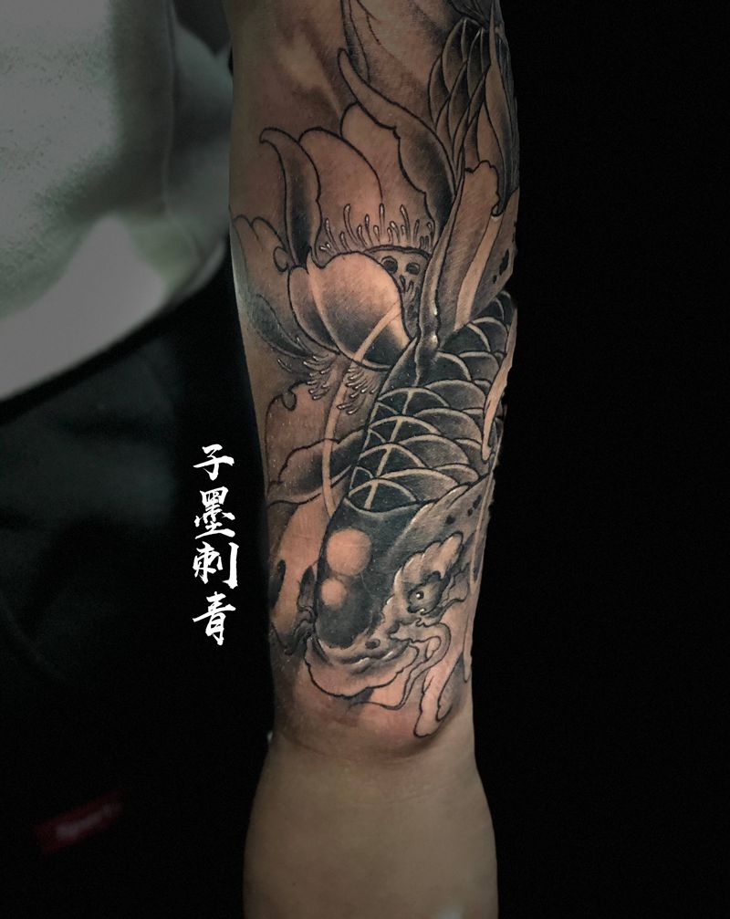 当前位置: 首页 >重庆市纹身店-子墨刺青工作室纹身图案>鲤鱼纹身图片_手臂新传统纹身图案