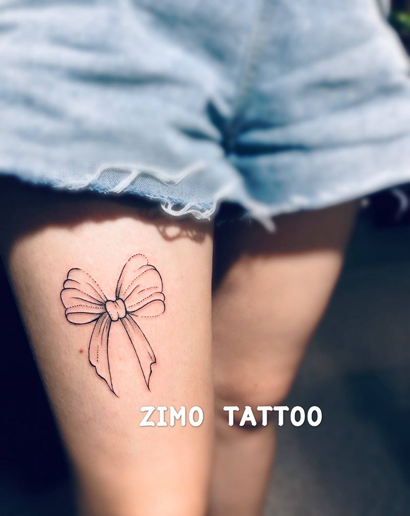 当前位置: 首页 >重庆市纹身店-子墨刺青工作室纹身图案>蝴蝶结纹身图片_腿部点刺纹身图案
