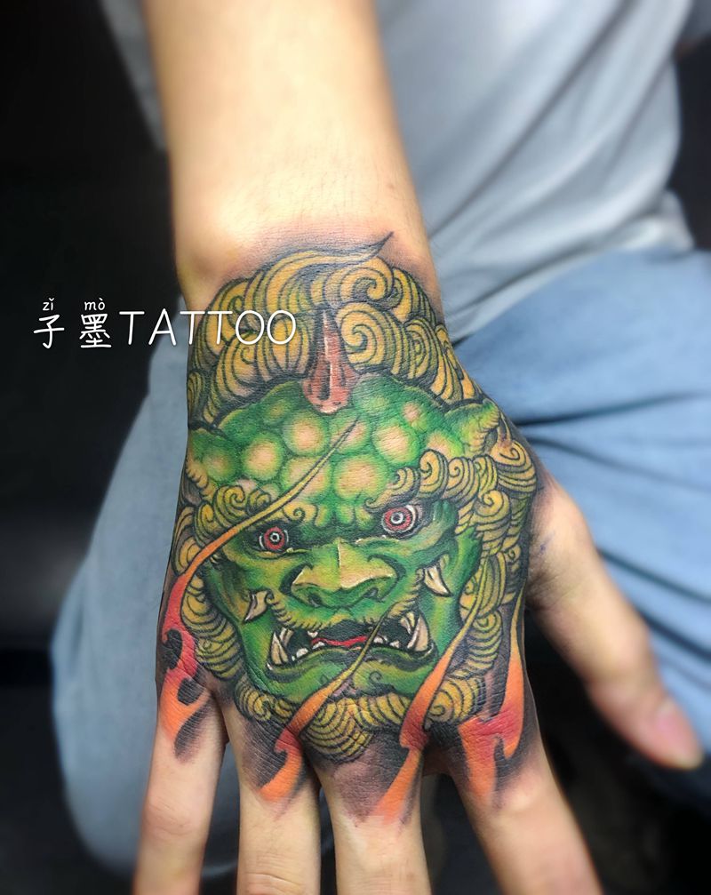 当前位置: 首页 >重庆市纹身店-子墨刺青工作室纹身图案>唐狮纹身图片_手部新传统唐狮纹身图案