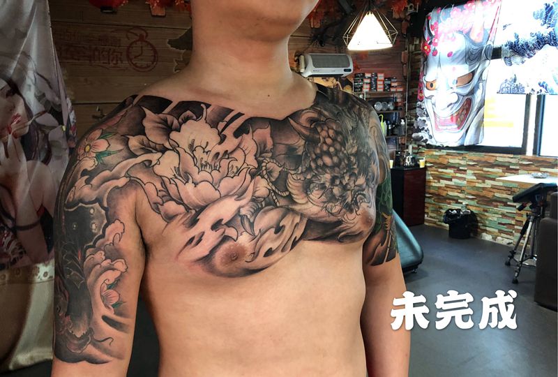 当前位置: 首页 >重庆市纹身店-子墨刺青工作室纹身图案>盖中盖纹身图片_胸部手臂新传统花胸纹身图案