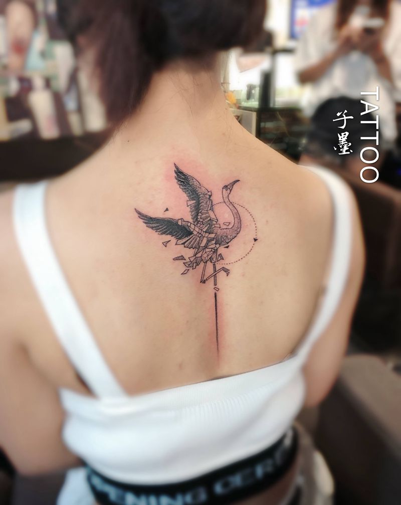 当前位置: 首页 >重庆市纹身店-子墨刺青工作室纹身图案>鹤纹身图片_背部几何纹身图案