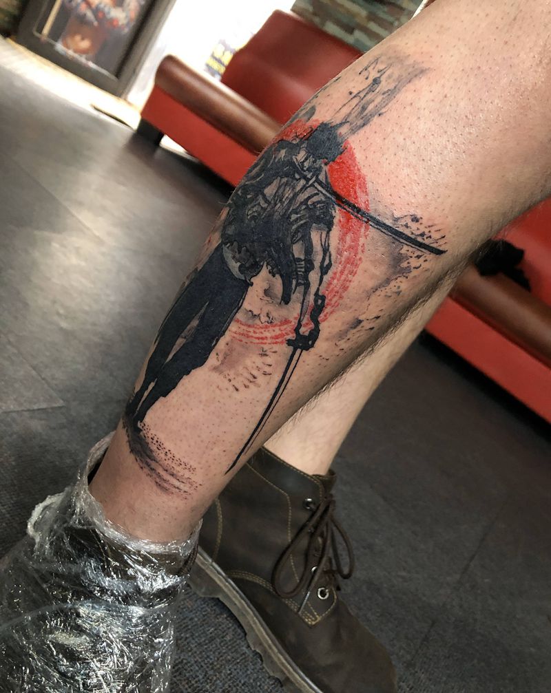 当前位置: 首页 >重庆市纹身店-子墨刺青工作室纹身图案>索隆纹身图片_腿部水墨纹身图案