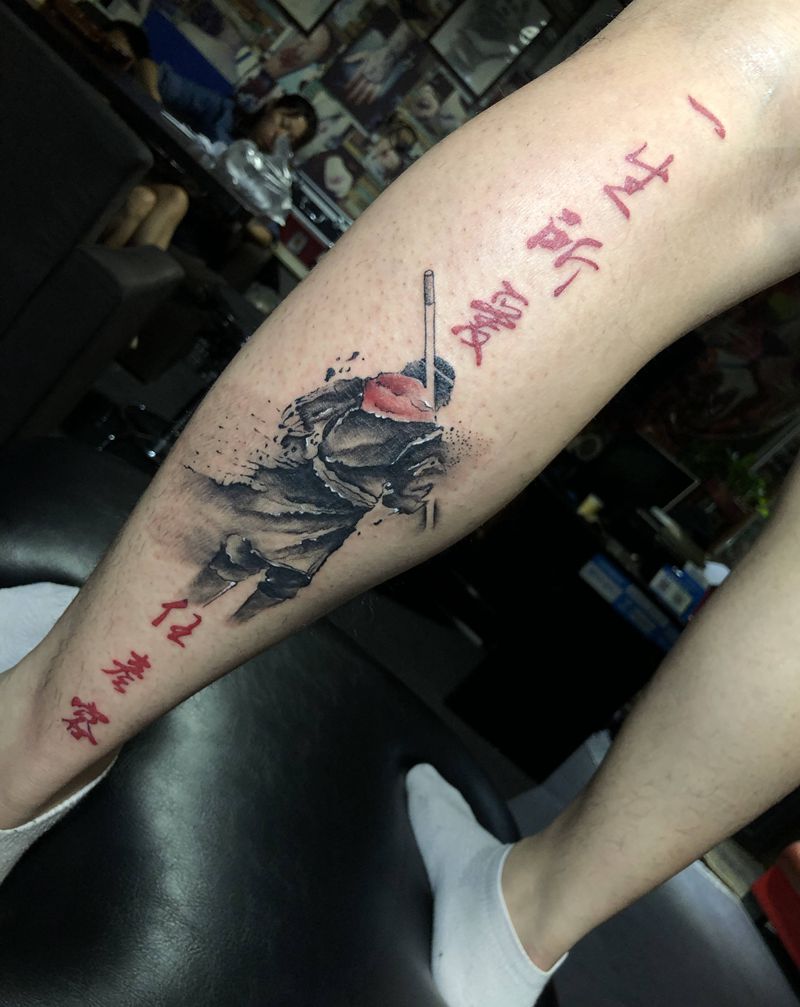 当前位置: 首页 >重庆市纹身店-子墨刺青工作室纹身图案>至尊宝纹身图片_腿部脚部纹身图案