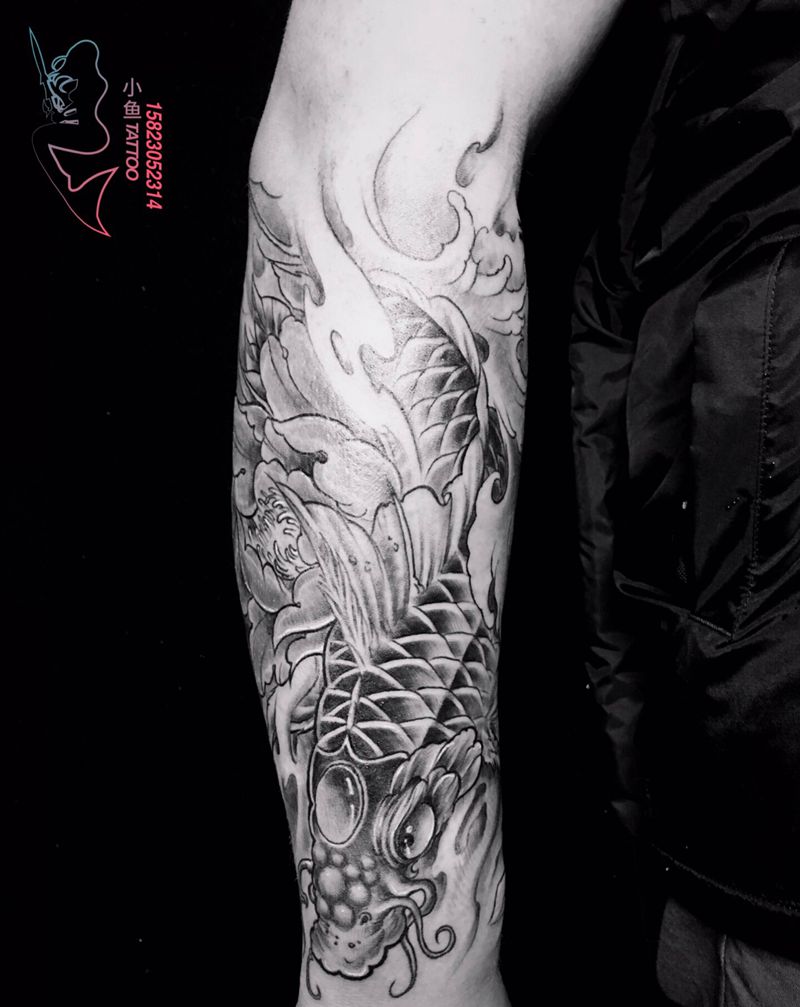 包小臂新传统鲤鱼纹身图片_手臂新传统鲤鱼 莲花纹身图案