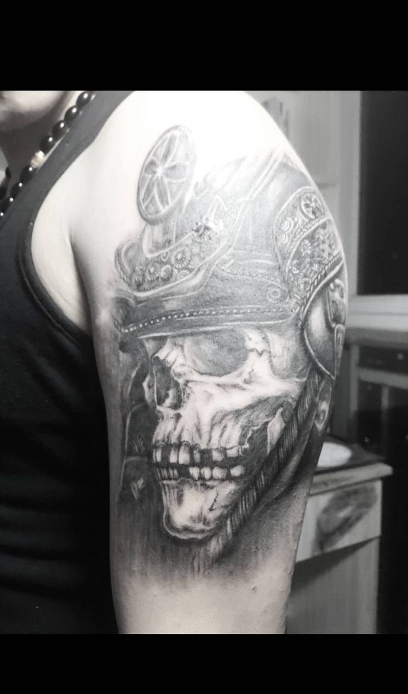 当前位置: 首页 >重庆市纹身店-小鱼刺青工作室纹身图案>鬼武士纹身图片_成品手臂传统纹身图案