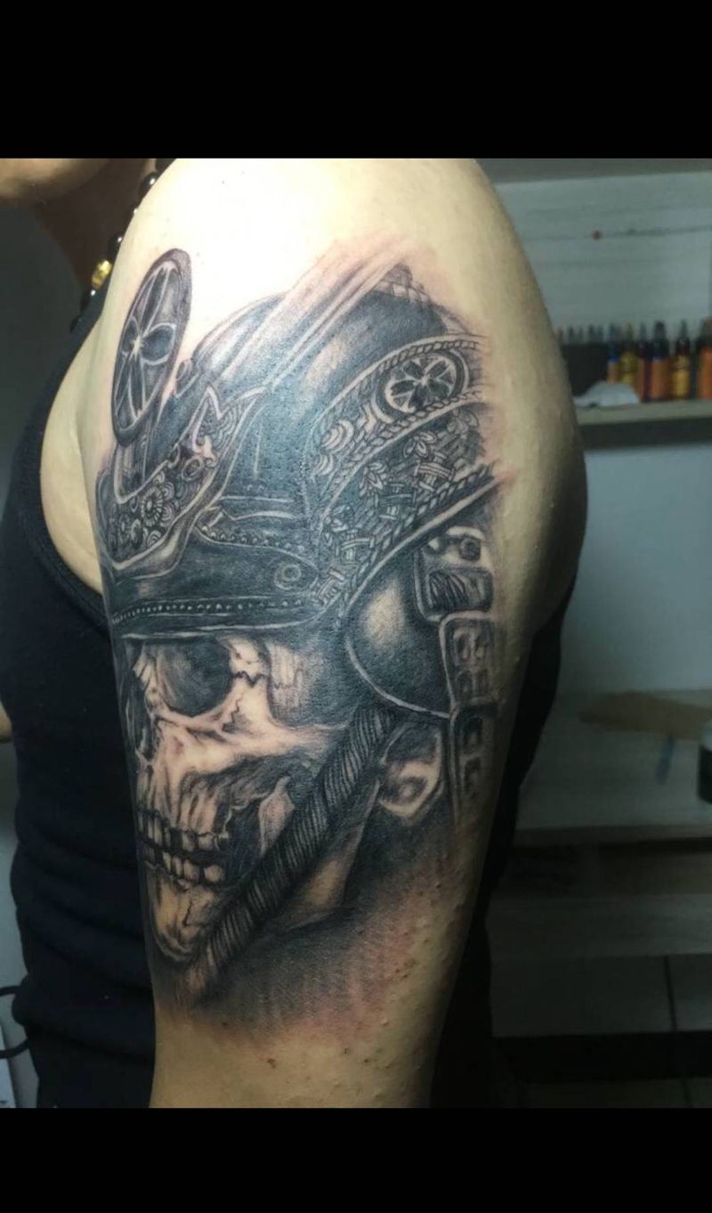 当前位置: 首页 >重庆市纹身店-小鱼刺青工作室纹身图案>鬼武士纹身图片_成品手臂传统纹身图案