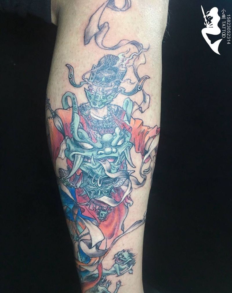 • T网红王老大花腿龙纹身图片_腿部新传统纹身图案