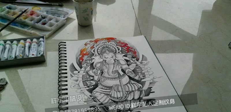当前位置: 首页 >四川省成都市纹身店-成都祥宇私人定制纹身纹身图案>象神原创手稿设计纹身图片_手臂传统鬼神原创手稿纹身图案