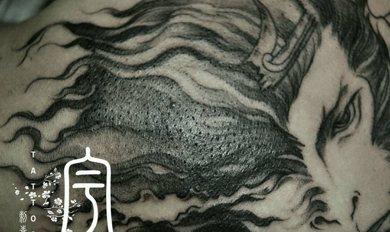 • 黑灰满背纹身图案