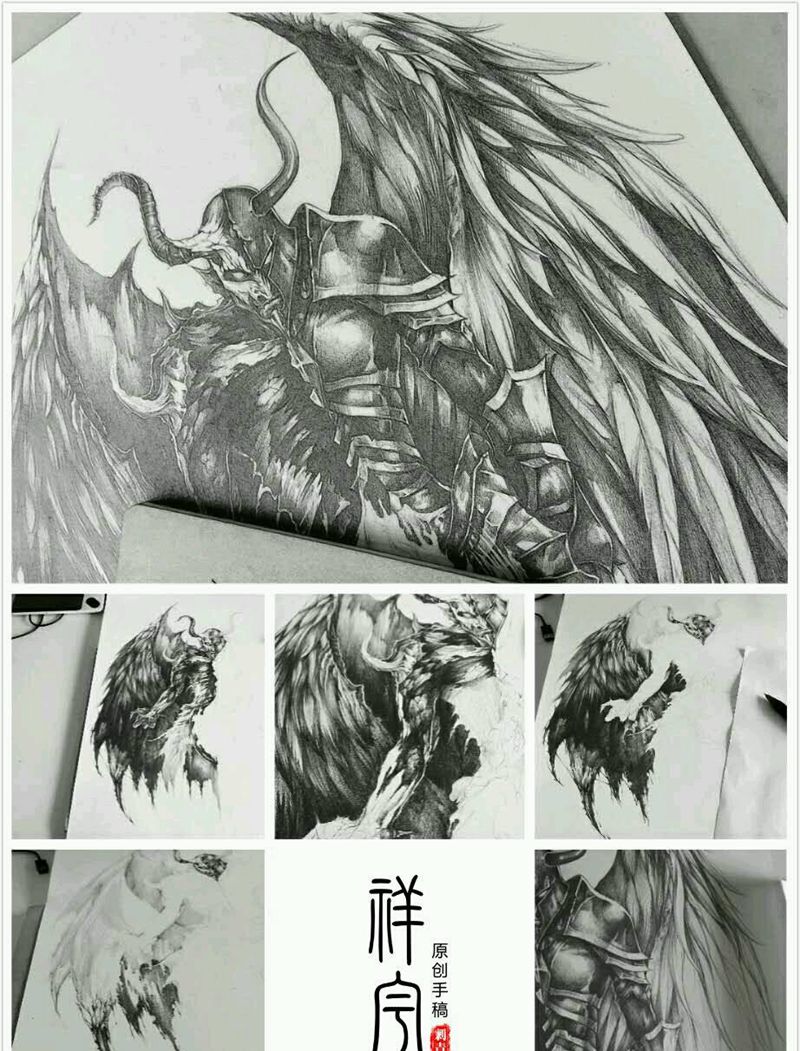 恶魔骑士纹身图片_手臂欧美写实鬼神原创手稿纹身图案