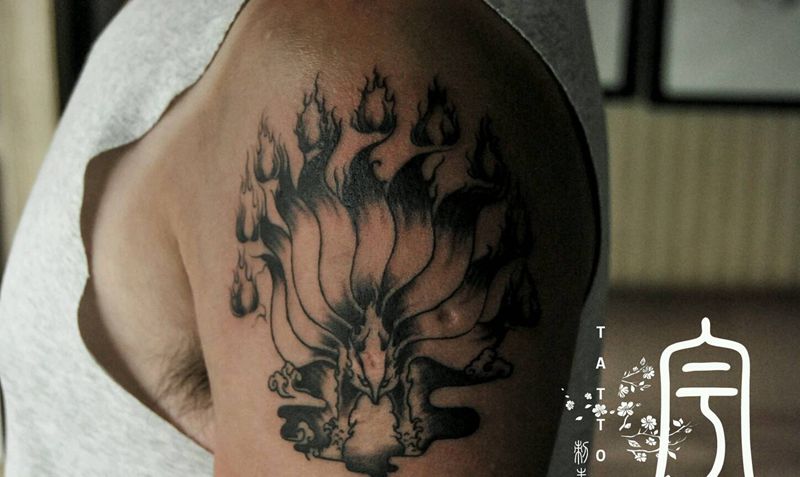 九尾纹身图片_手臂传统鬼神原创成品纹身图案