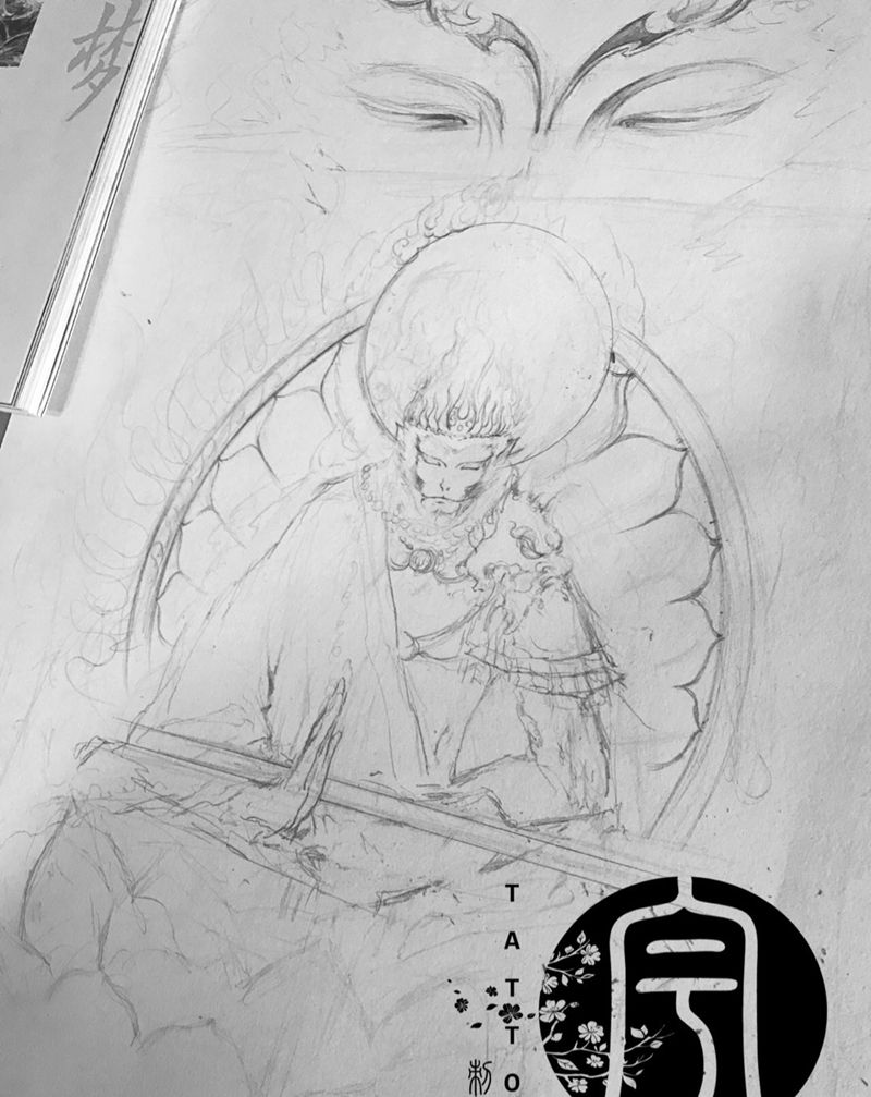 当前位置: 首页 >四川省成都市纹身店-成都祥宇私人定制纹身纹身图案>满背斗战胜佛定制 原创纹身图片_手稿背部传统鬼神原创纹身图案