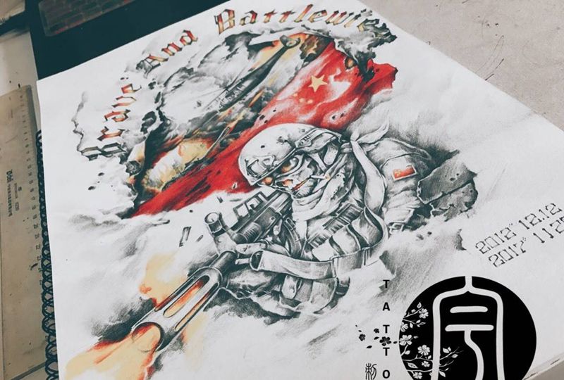 当前位置: 首页 >四川省成都市纹身店-成都祥宇私人定制纹身纹身图案>红色战魂纹身图片_手稿手臂写实原创纹身图案