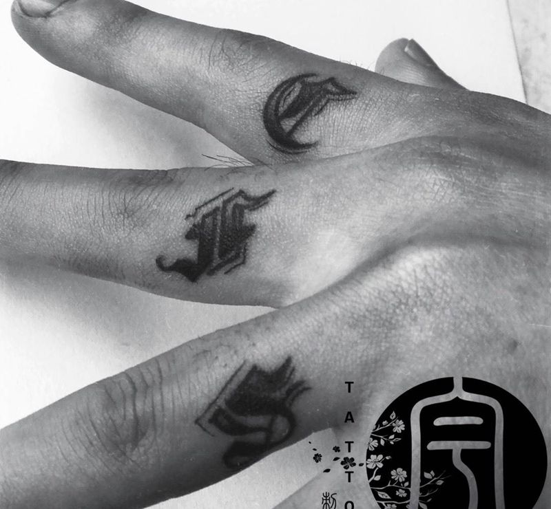 哥特字母纹身图片_成品手部欧美字符纹身图案