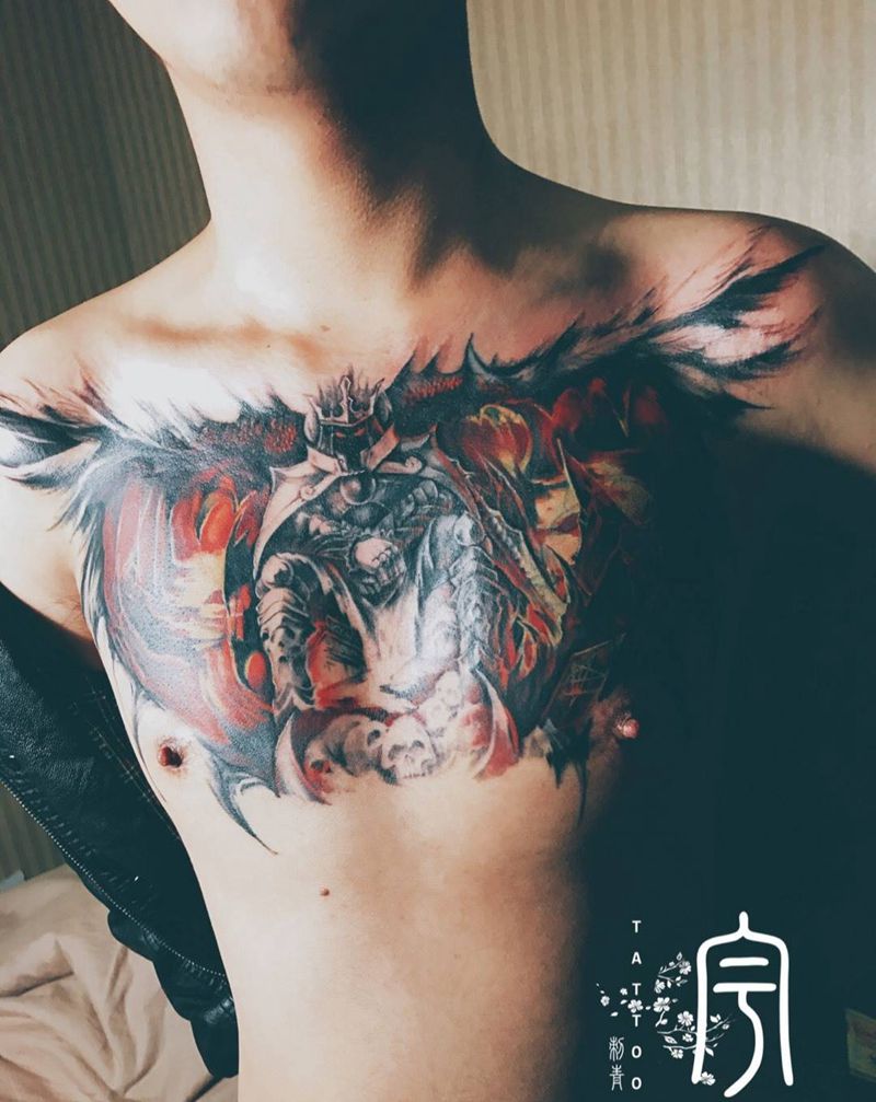 原创遮盖,火焰君王纹身图片_成品胸部欧美写实原创鬼神纹身图案