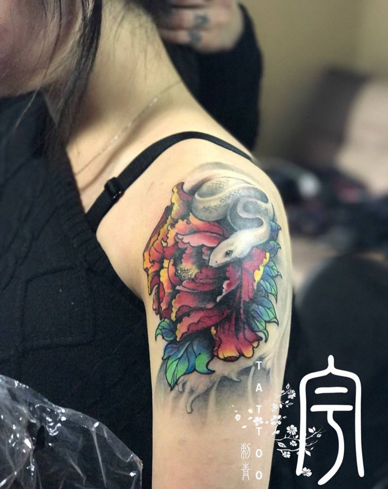 • 女性大花胸纹身_43张霸气漂亮的女性大花胸纹身图案作品