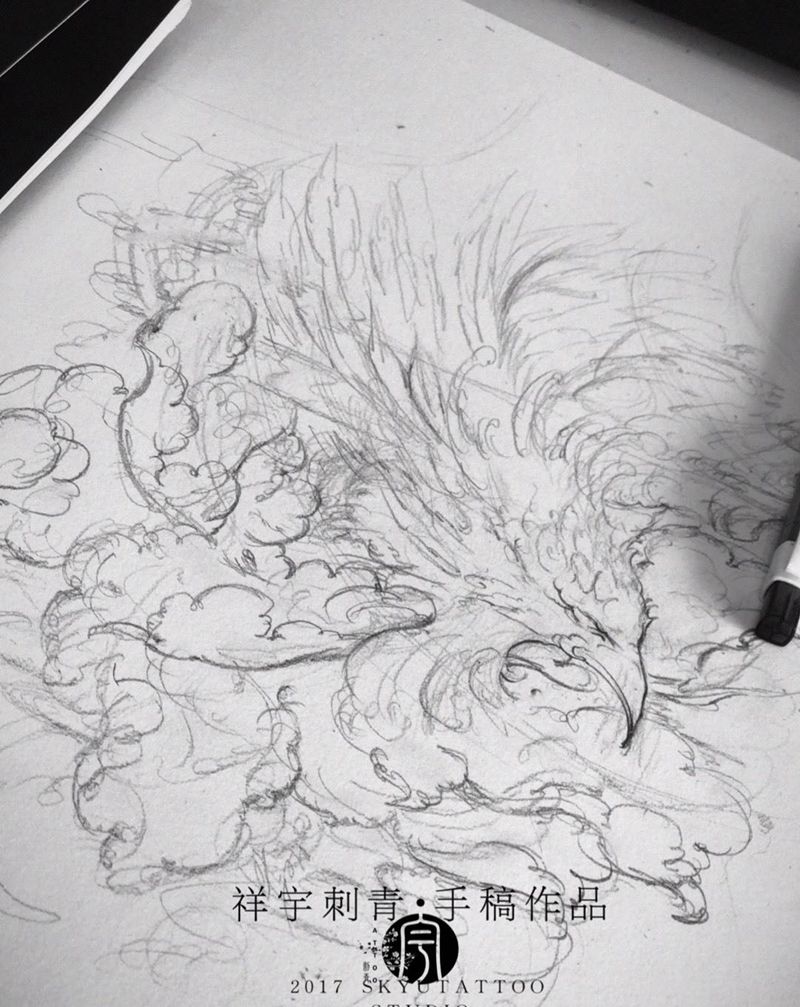 当前位置: 首页 >四川省成都市纹身店-成都祥宇私人定制纹身纹身图案>定制手稿设计纹身图片_手稿背部传统动物植物原创纹身图案