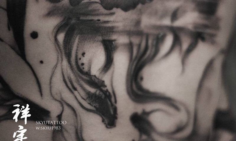 当前位置: 首页 >四川省成都市纹身店-成都祥宇私人定制纹身纹身图案>传统水墨纹身图片_成品背部传统国画原创植物人物纹身图案