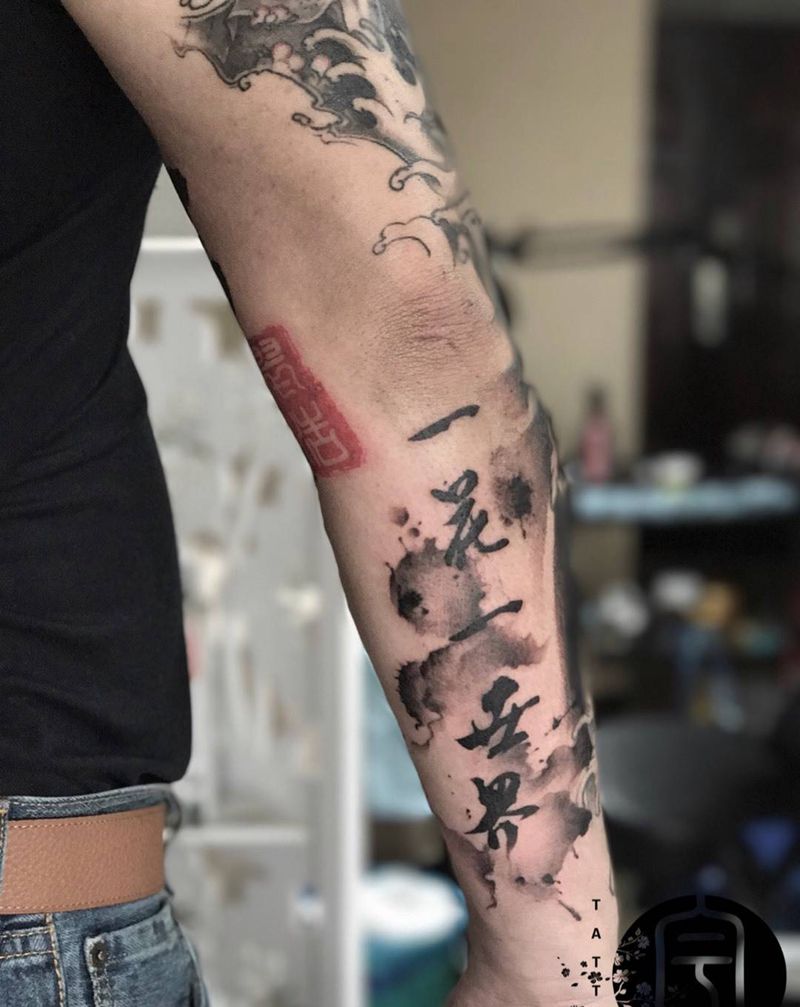 花臂纹身图片_成品手臂传统人物字符纹身图案