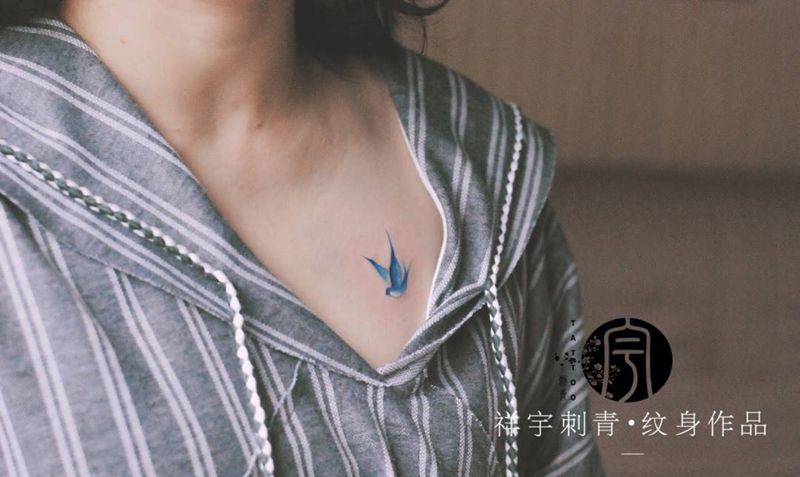 小清新燕子纹身图片_成品胸部清新动物原创纹身图案