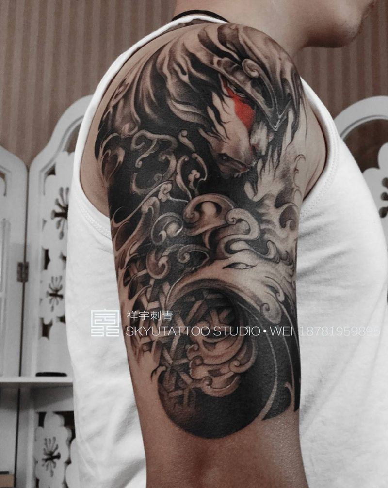 • 纹身吧推荐的披肩图腾半胛纹身图案作品展示