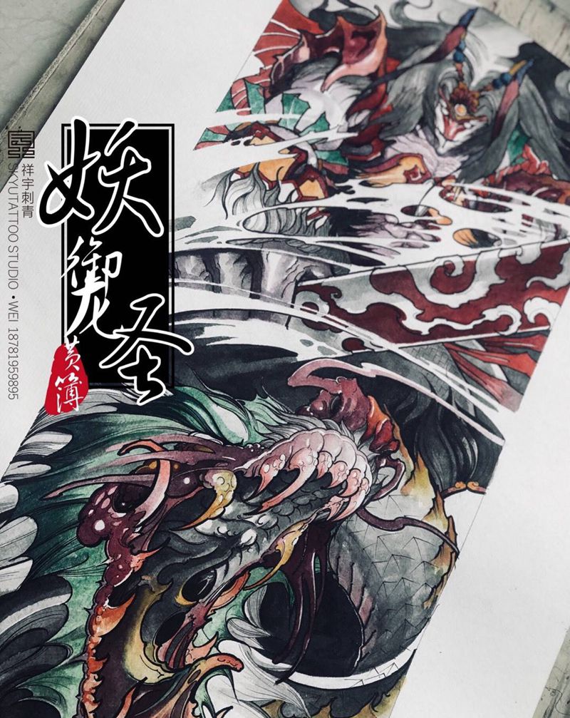 原创手稿•妖圣御龙纹身图片_手稿传统鬼神原创纹身图案